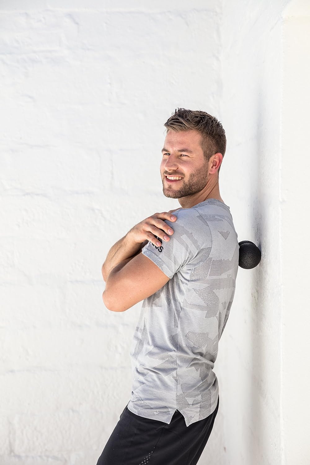 Durch die “Erdnussform” eignet sich der Duoball von BLACKROLL besonders gut für die Massage der Oberarme, der Waden, des Nackens und der Muskeln entlang der Wirbelsäule. Da der Duoball so leicht und handlich ist, ist eine angenehme Selbstmassage sehr gut möglich. Außerdem lassen sich verspannte Partien sehr gezielt und punktuell bearbeiten.