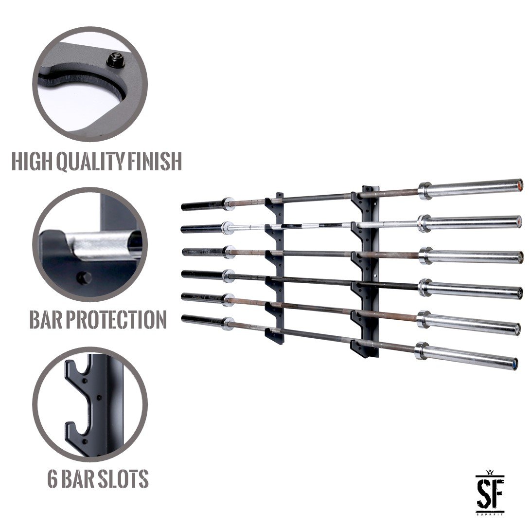 - STARK: Die platzsparende Langhantelstangenablage von Suprfit bietet Platz für bis zu 6 oder 10 Stangen und ist geeignet für die Montage an der Wand. Dank der guten Verarbeitung liegen die Hanteln stabil und ohne zu wackeln in der Halterung